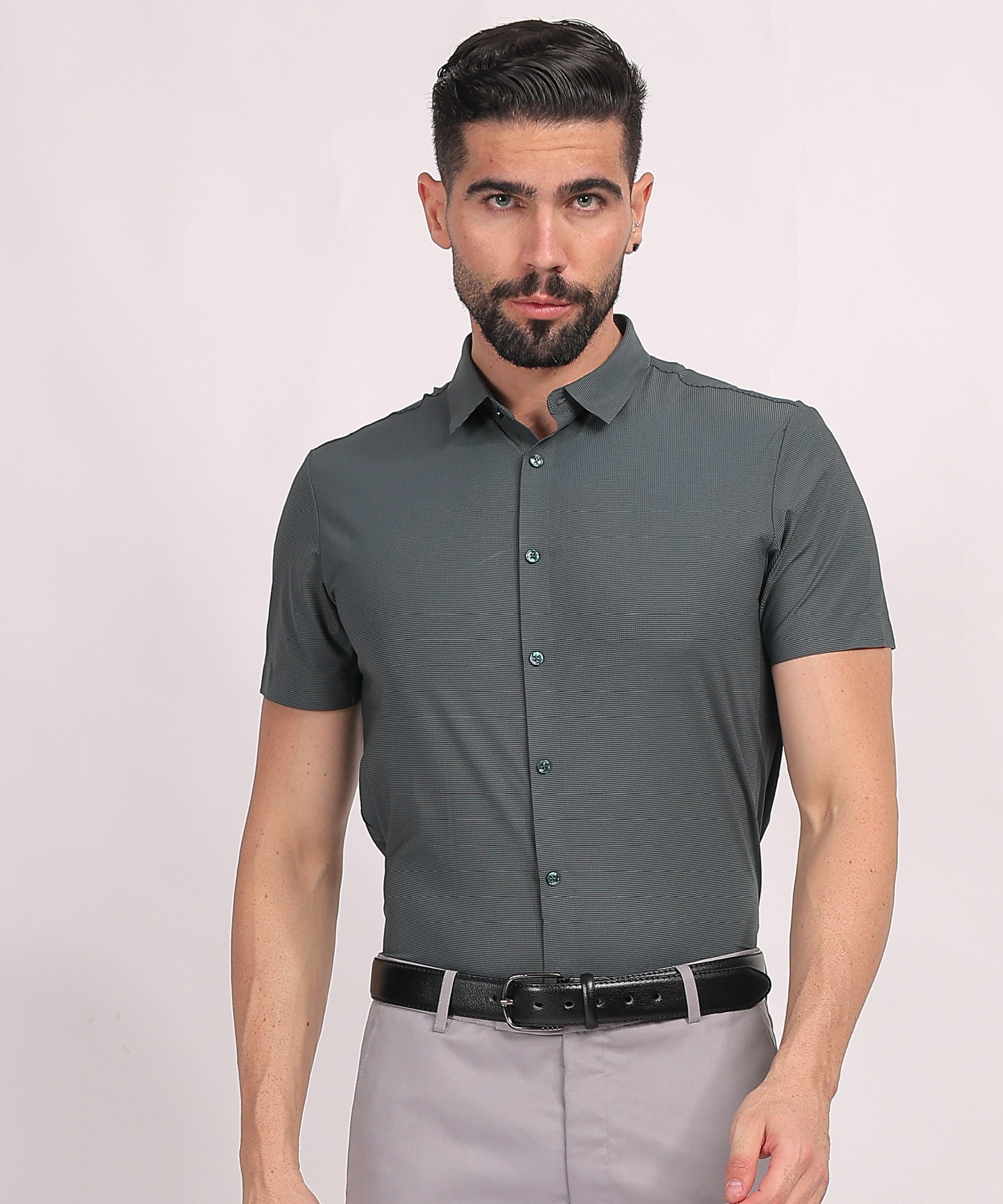 Dark Olive Green Stitchless Short Sleeve Shirt